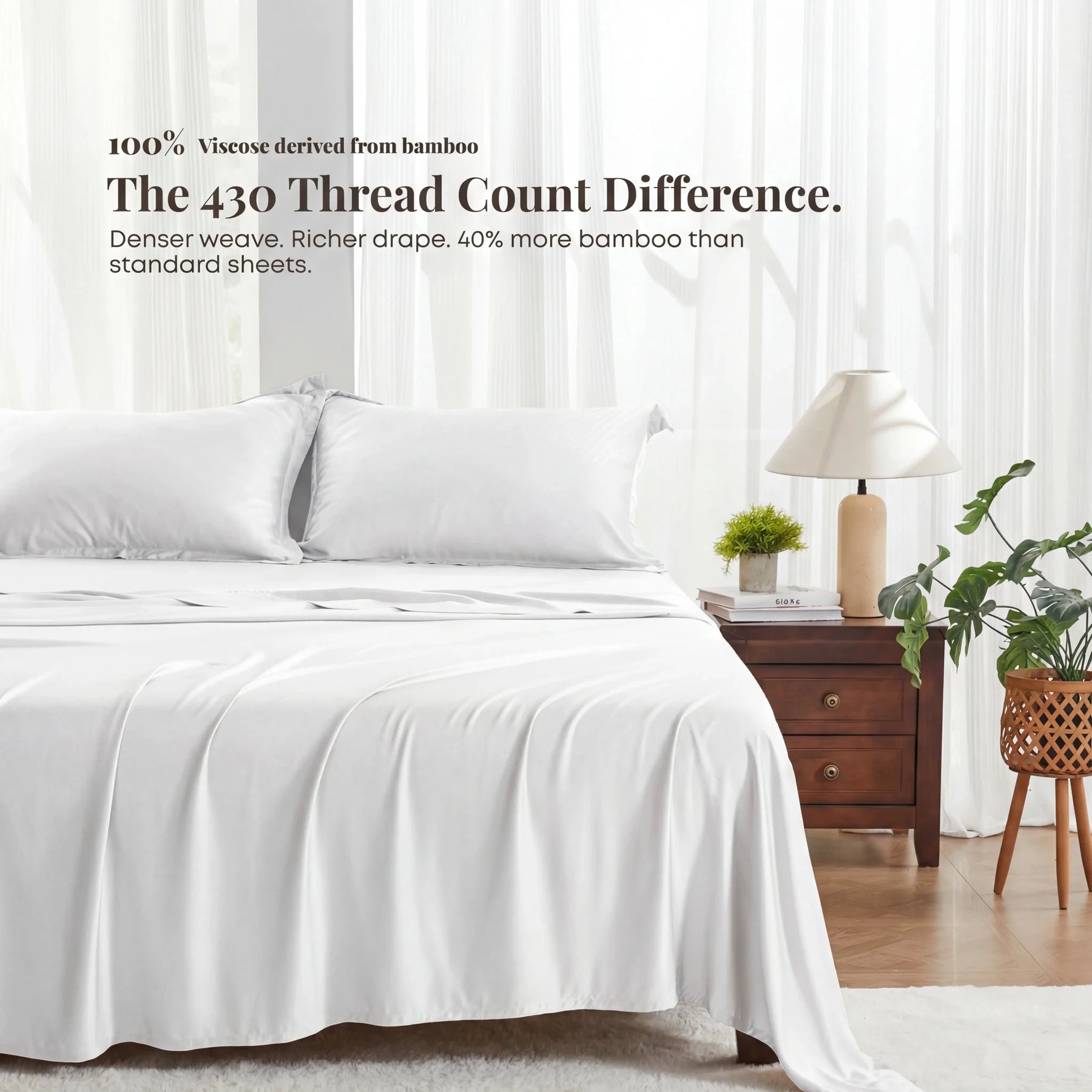 - Fabric: 100% Premium Rayon from Bamboo (430 Thread Count).