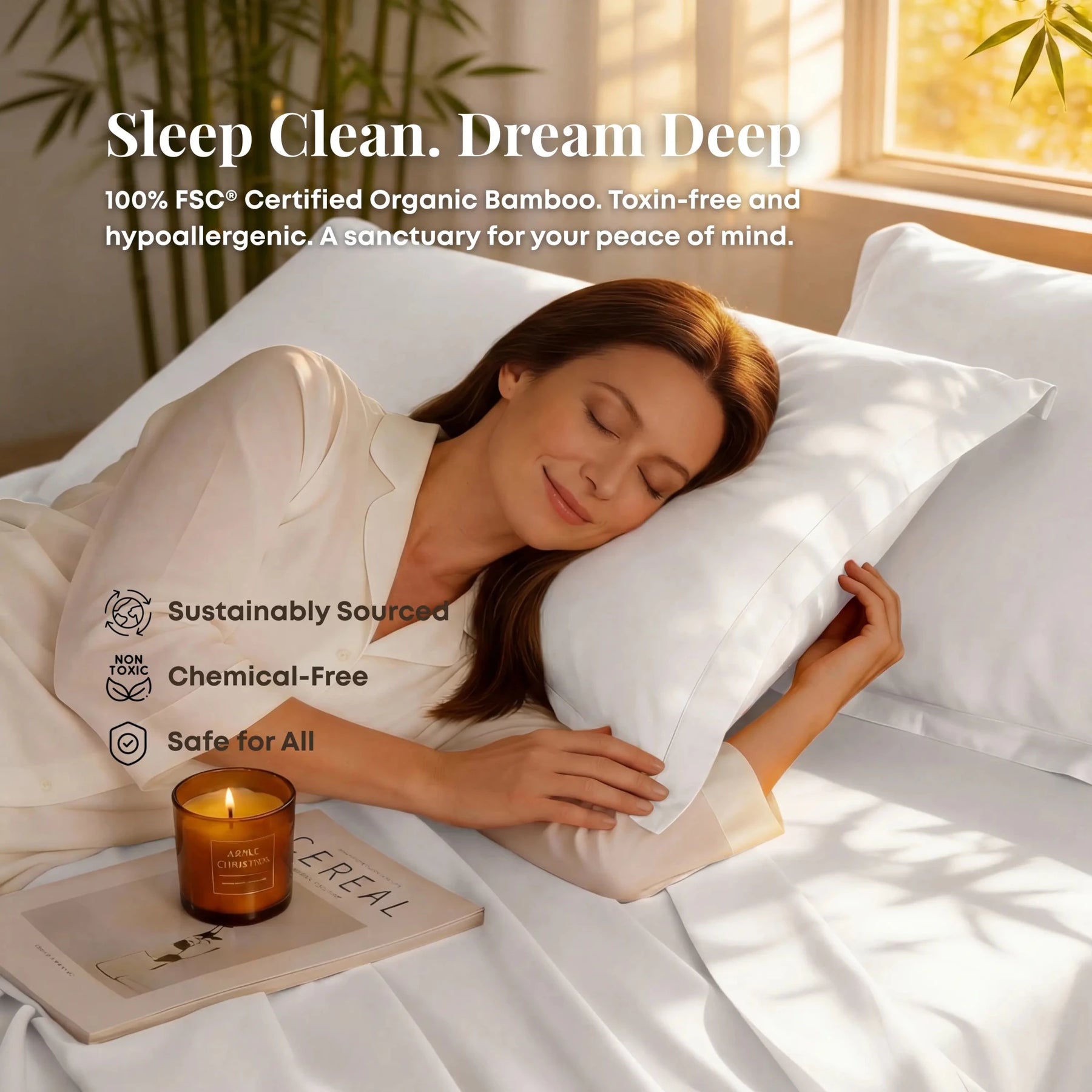 Not all bamboo is created equal. The CloudLuxe™ Series uses higher-density, 80*80 ultra-fine yarns to create a fabric that is significantly smoother and more durable than standard bamboo bedding. It offers a luxurious, fluid drape without trapping heat—giving you the "heavy" quality of hotel sheets with the "airy" feel of nature.